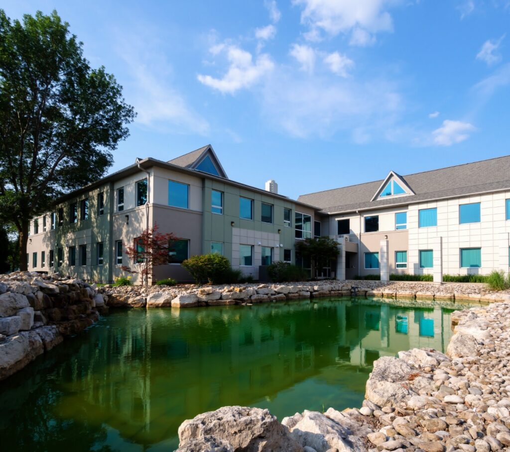 One of the building’s most innovative features is the stormwater management pond, which not only collects rainwater from the roof but also functions as a cooling system and a natural wildlife habitat. Excess heat from the mechanical system is transferred into the pond, where it dissipates through evaporation — at the time a forward-thinking approach to both sustainability and energy efficiency.