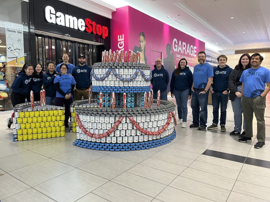 This year also marks a major milestone for us—MTE’s 40th anniversary! As part of the celebration, we participated in Canstruction for our 16th year with a fitting tribute: a custom-designed and constructed birthday cake made entirely of canned goods, honouring both our history and our continued commitment to giving back.