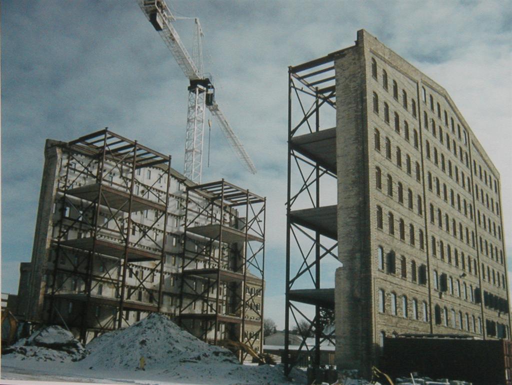 In 1998, MTE began work on the civil engineering design for the Seagram Lofts in Waterloo—an ambitious and innovative redevelopment led by Terra View Homes, Kiwi Newton Construction, and Grinham Architects. The project transformed the historic Seagram Distillers whiskey barrel warehouse into 105 luxury condominium units, spread across one 11-storey and one 7-storey building. A combination of innovative structural engineering by Sze Straka Engineers and construction methodology by Kiwi Newton allowed for the restoration and conversion of these highly complex buildings.