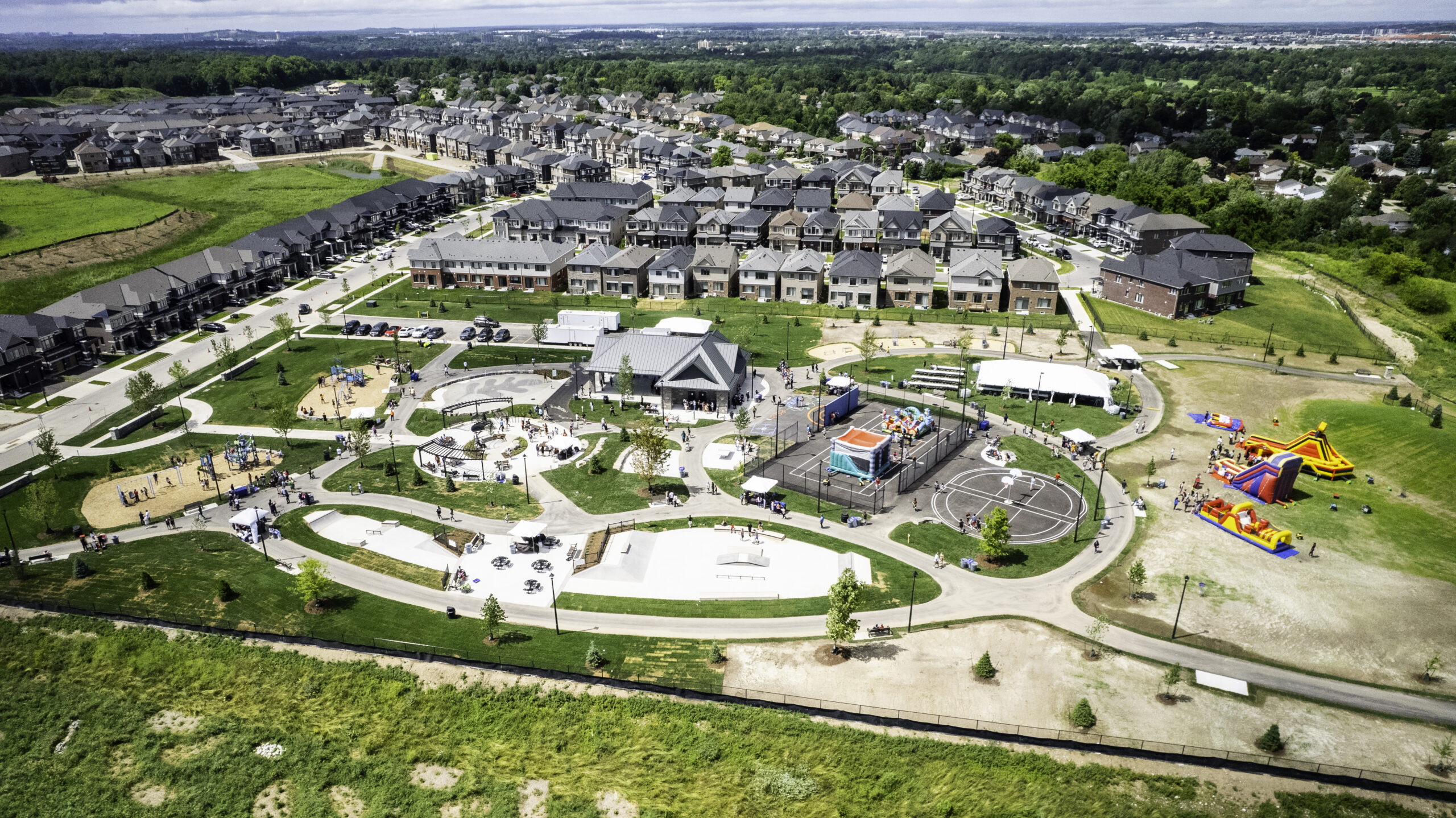 Bismark Park has been generously donated by Hallman Construction Limited for Cambridge residents. The park features a broad range of amenities that will be accessible to people of all ages, including splash pads, a pavilion, a skatepark, playgrounds, basketball courts and tennis/pickleball courts, greenspace and more.